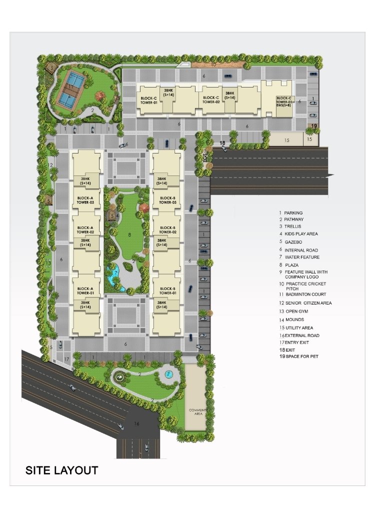 Enjoy spacious 3BHK towers set amid lush gardens and tranquil water features. This gated community includes a kids’ play area, open gym, sports courts, and a dedicated pet zone—with convenient parking and secure, multiple entry/exit points. Discover the ideal blend of comfort, connectivity, and amenities for modern living.